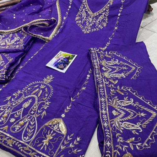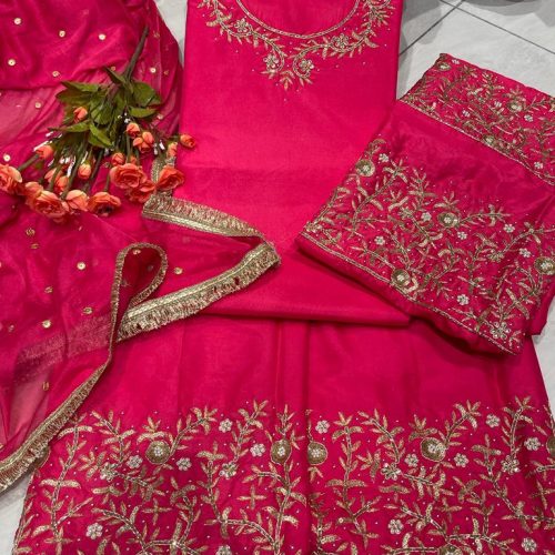(Kurti Lenth 45 inch)Bottom - Viscose Pant with Fancy Crosio LaceDupatta - Embroidery & Sequence Work On Pure Organza With 4 Side Crosio LacesSizes-