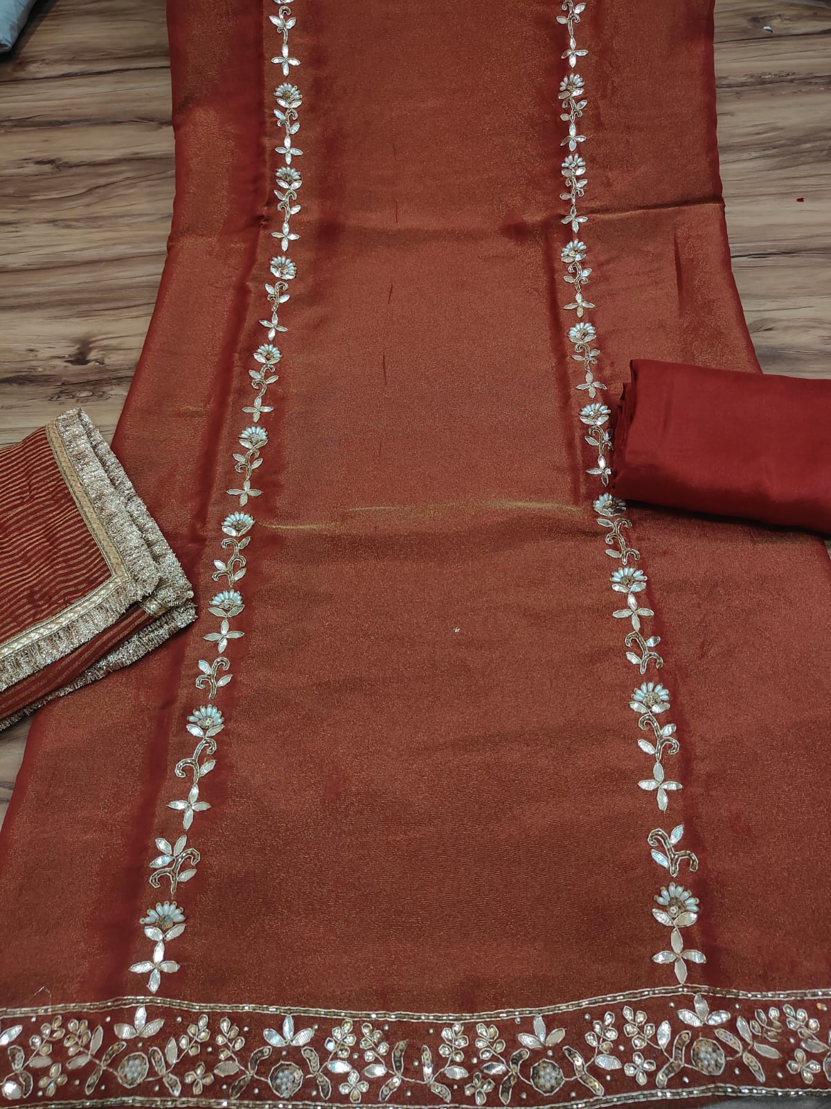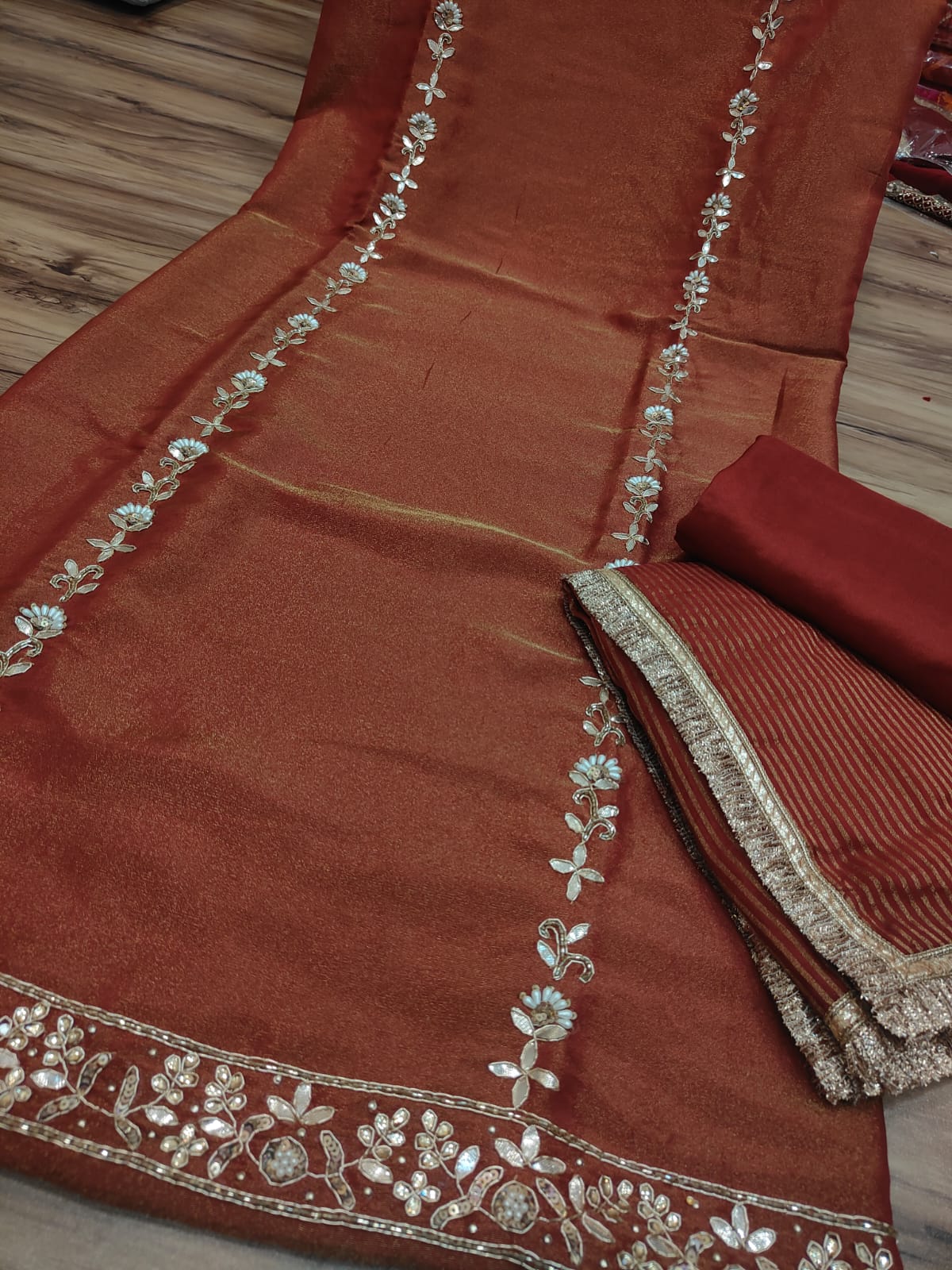 Shimmer golden lines dupatta
